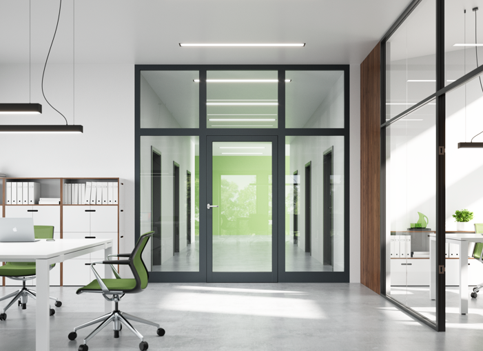 Vollverglaste, designstarke Rauch- und Feuerschutzelemente von Hörmann.